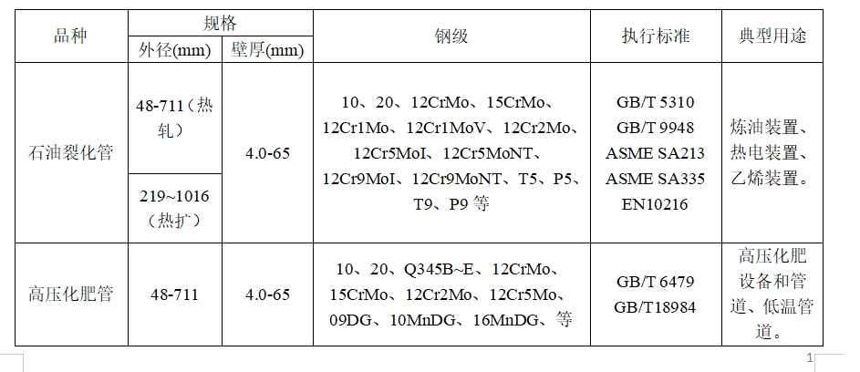 用于工作温度为-40至400摄氏度、工作压力为10-32兆帕的化工设备和管道,适宜输送合成氨、尿素、甲醇等介质。