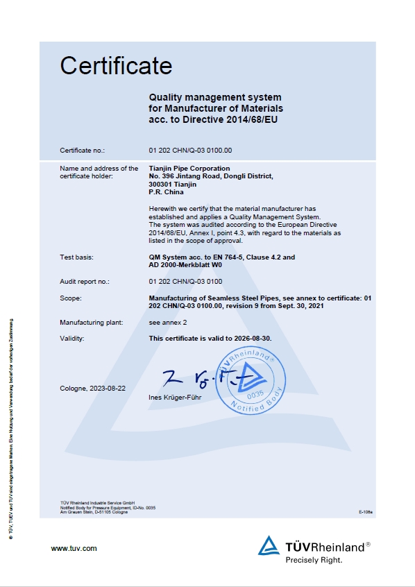 PED欧洲承压设备指令证书