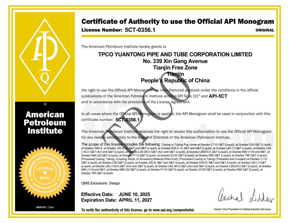 API 5CT会标许可证书-元通
