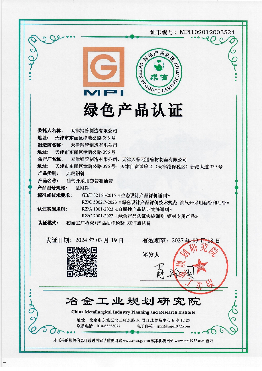 绿色产品证书