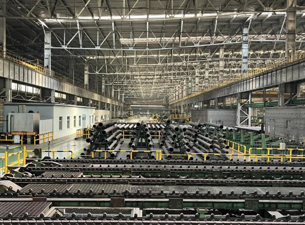 图为天津钢管生产车间