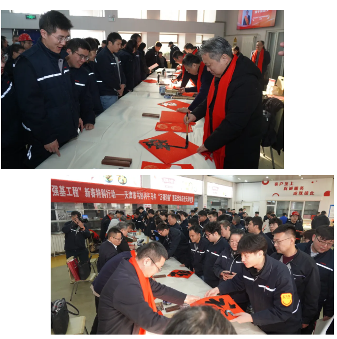 本次活动特别邀请10位书法界重磅名家亲临现场,中国书法家协会理事、天津市文联副主席、天津市书法家协会驻会副主席兼秘书长杨健君,中国书法家协会会员、天津市书协副主席、天津市东丽区书法家协会主席邢纪庆,中国书法家协会会员、天津市书法家协会副主席、西青区书法家协会主席杨国欣,中国书法家协会会员、天津书法家协会副主席、青少年委员会副主任孟巍,中国书法家协会会员、天津市书法家协会理事、天津市红桥区书协副主席王智忠,中国书法家协会会员、全国公安文联会员卢智剑,中国书法家协会会员、天津书协理事、天津书协篆刻委员会副主任赵祥立,中国书法家协会会员、天津市书法家协会理事、天津市和平区书法家协会副主席邓英彪,天津书协草书委员会委员、天津金融书法家协会副主席李延达,天津市书法家协会篆书委员会委员、天津市滨海新区书法家协会理事、副秘书长刘阳为公司劳动模范代表、年度先进代表、女职工代表、青年职工代表以及奋战在各条战线职工挥毫泼墨,写福迎春。