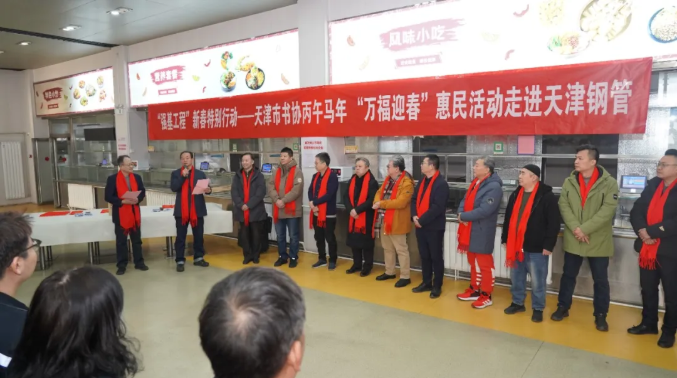 2026年2月5日,为深入学习践行习近平新时代中国特色社会主义思想和党的二十届四中全会精神,精准落实“以文化人、以文惠民、以文润城、以文兴业”文化使命,积极响应中国书法家协会与天津市书法家协会号召,天津钢管携手天津书协共同举办“强基工程”新春特别行动——天津市书协丙午马年“万福迎春”文化惠工活动。公司常务副总经理温德松出席活动并致欢迎辞,天津书协驻会副主席兼秘书长杨健君代表书协一行向公司职工致以新春祝福和亲切问候。